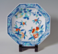 三果文(さんかもん)は、別名三多文(さんたもん)とも呼ばれる吉祥文様です。その実を多くつける柘榴、豊かな実りをイメージさせる桃の実、実がまるで仏様が手をあわせたかのように見えることからその名がついた仏手柑(ぶしゅかん)を意匠化しています。多産・豊穣・多福を連想させる三つの果実が、より良い未来・幸福への願いを表している大変おめでたい文様です。